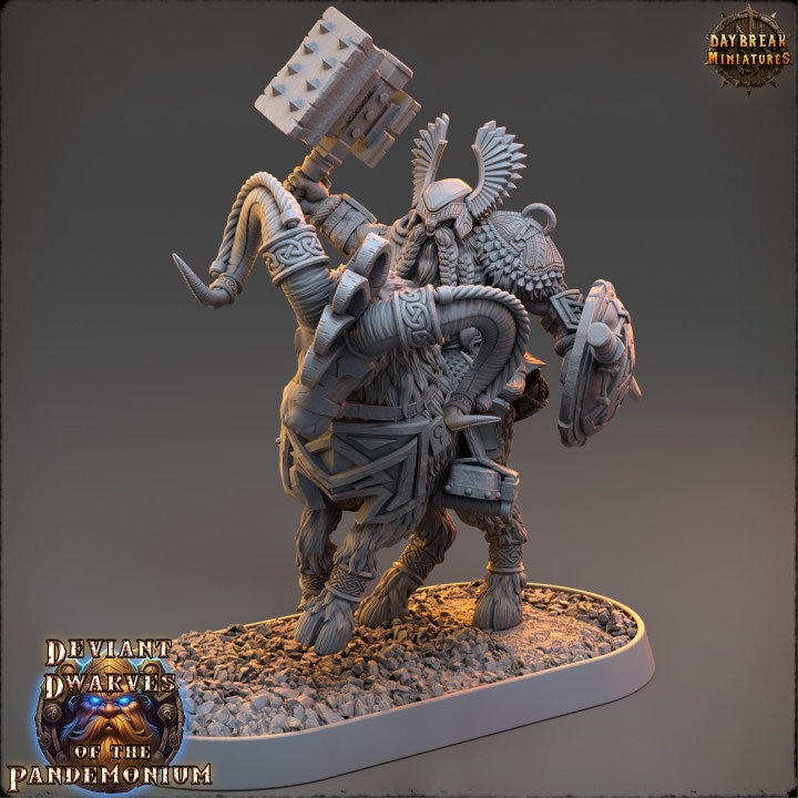 Trazdak Darkbane on Fire Goat| Deviant Dwarves of the Pandemonium | Daybreak Miniatures |5E Resin Miniatures | Dwarf Tabletop Warrior
